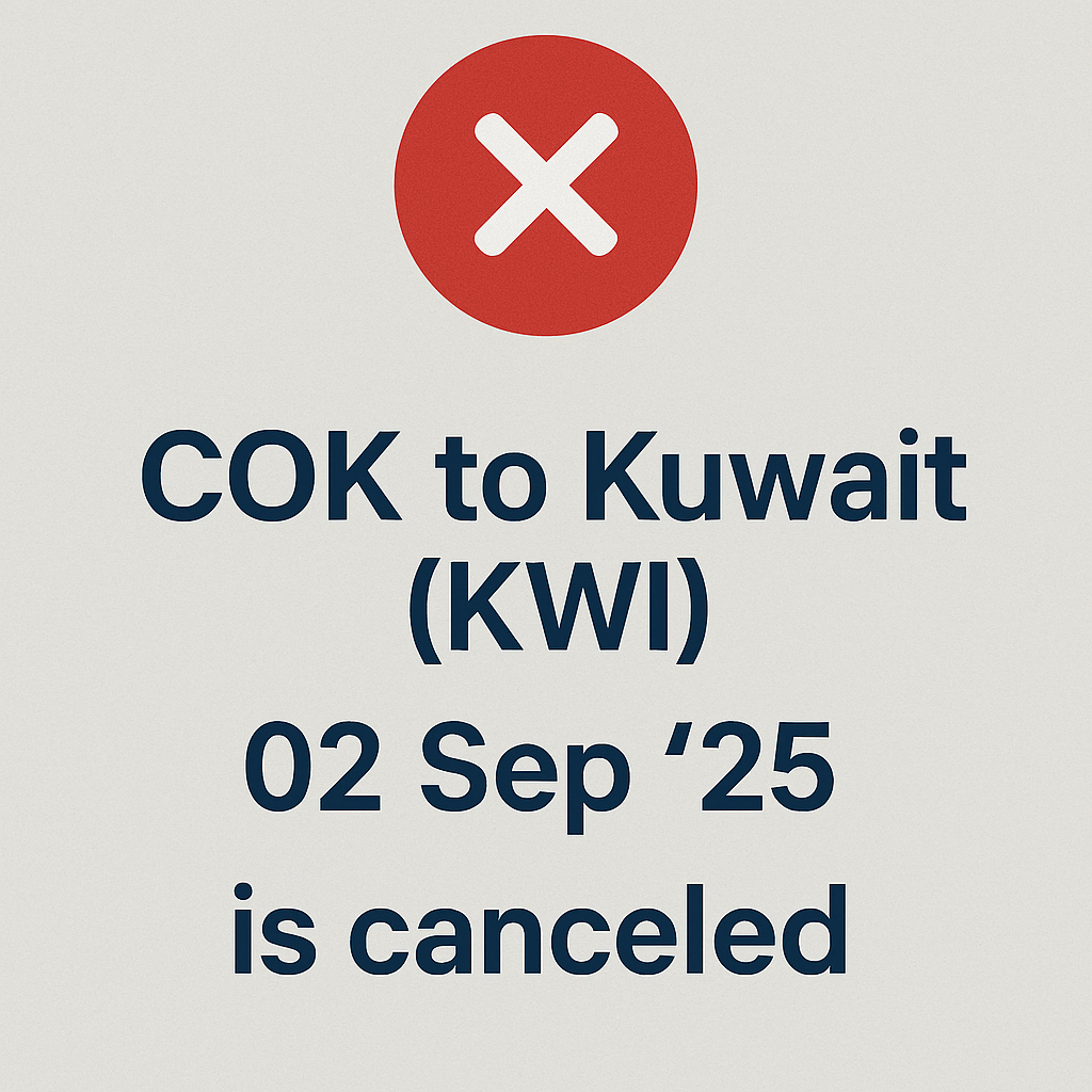We sincerely regret to inform you that your flight null-461 from Kochi (COK) to Kuwait (KWI) on 02 Sep '25 is canceled due to Operational reason.